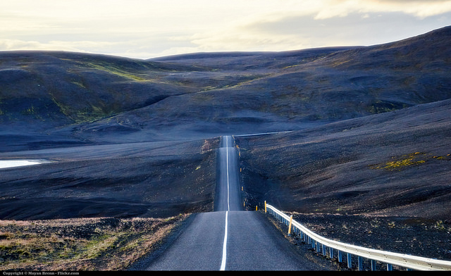 Images: Water landscape, Moyan Brenn on Flickr; Protester, ibt.co.uk; Laugavegur shopping street, Marek Ślusarczyk on Wikimedia Commons; landscape with road; Moyan Brenn on Flickr