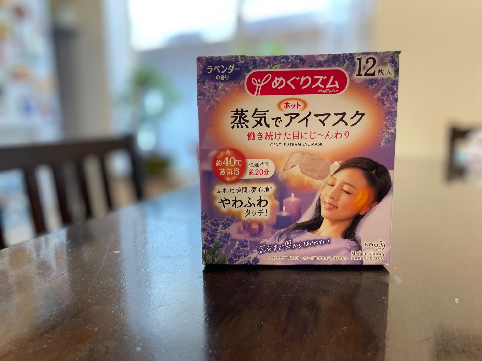 I’ve become hooked on self-heating steam eye masks from Japan. They are a godsend after a long day touring or on the plane, where they help me avoid the migraines that are sometimes the result of air travel. The lavender ones are especially relaxing.