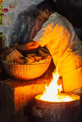 All that changed when I arrived in New Delhi. I was still working long hours, but I had more disposable income and more free time. There were just so many wonderful options everywhere I turned. At work, the canteen hot lunch was OK in a pinch, but far more interesting were tiffin subscriptions—you’d get a home-cooked thali-style lunch of rice, beans, vegetables, etc. delivered to the office. And if you wanted to go out, a narrow street next to our office complex was a constantly changing buffet of deliciousness. In the mornings, vendors served spicy, sweet chai boiled in massive pots, puffy kochuri, and flaky cauliflower parantha dripping with ghee and accompanied by sour pickle. Afternoons meant chaat, biryani, and thalis. The evenings were my favourite—I almost always got a hot, enormous naan from a metal-barrel tandoor. My friends and I would laugh and talk as we ate by the light of the oven’s flames.