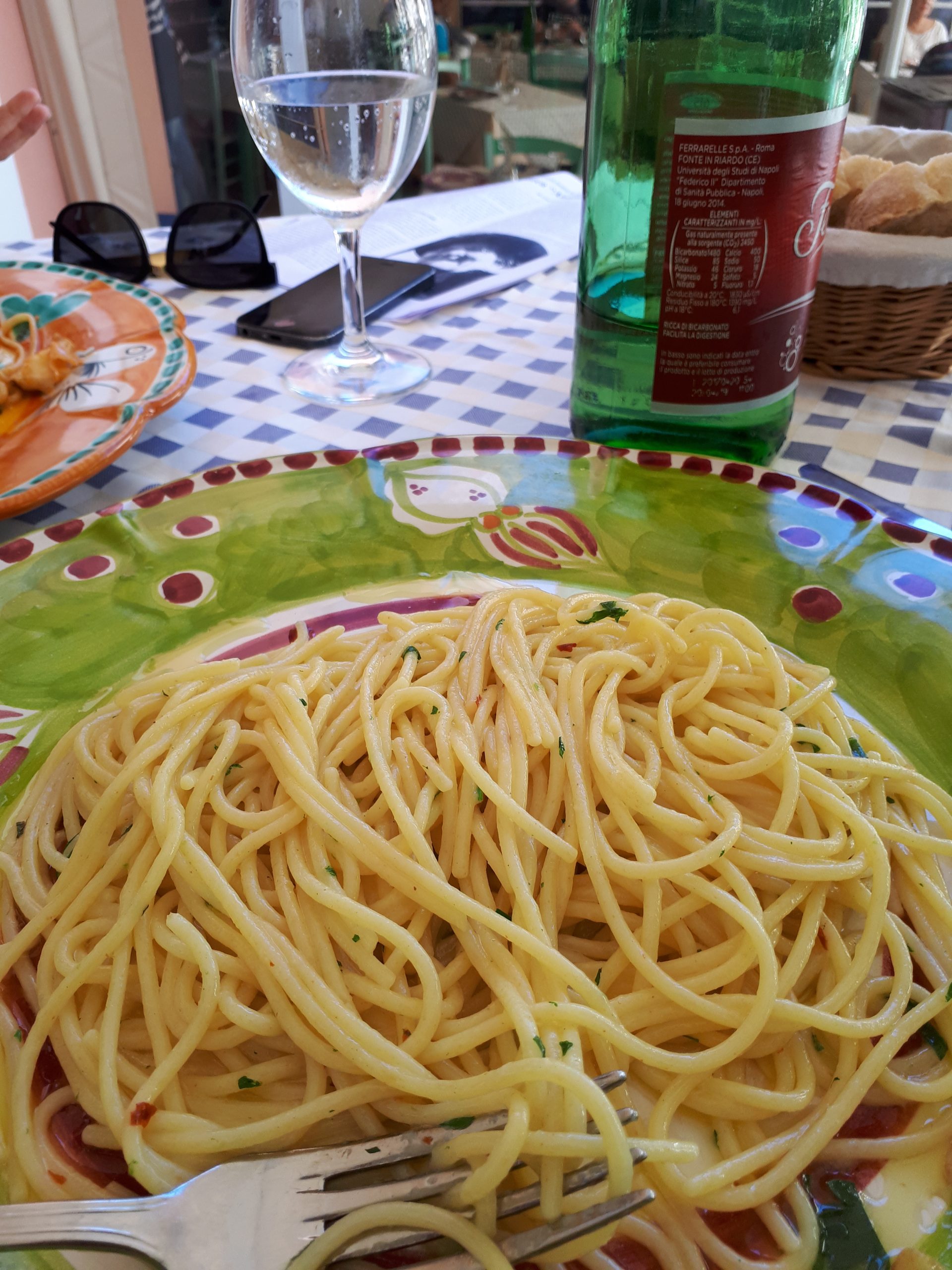 These relationships were nurtured by enjoyable times spent with the group uncovering Ferrante’s world in Naples and Ischia, but also in those brief snatches of off-the-record conversations during lunch breaks when we hunkered down one on one, over a plate of fiorilli (zucchini flowers fried in batter) accompanied by the local crusty bread, or twirling al dente pasta dressed only with a memorable olive oil, good garlic and aromatic parsley.