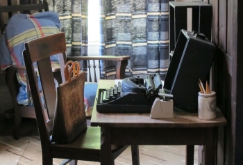 We peered into the spare room where she spent the mornings typing at her small desk.