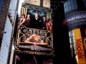 Image credits: Copy of The Great Gatsby, “Write On with Miss G“; 1974 movie poster, theeducationshop.au; 2013 movie poster in Times Sqaure, Brecht Bug on Flickr