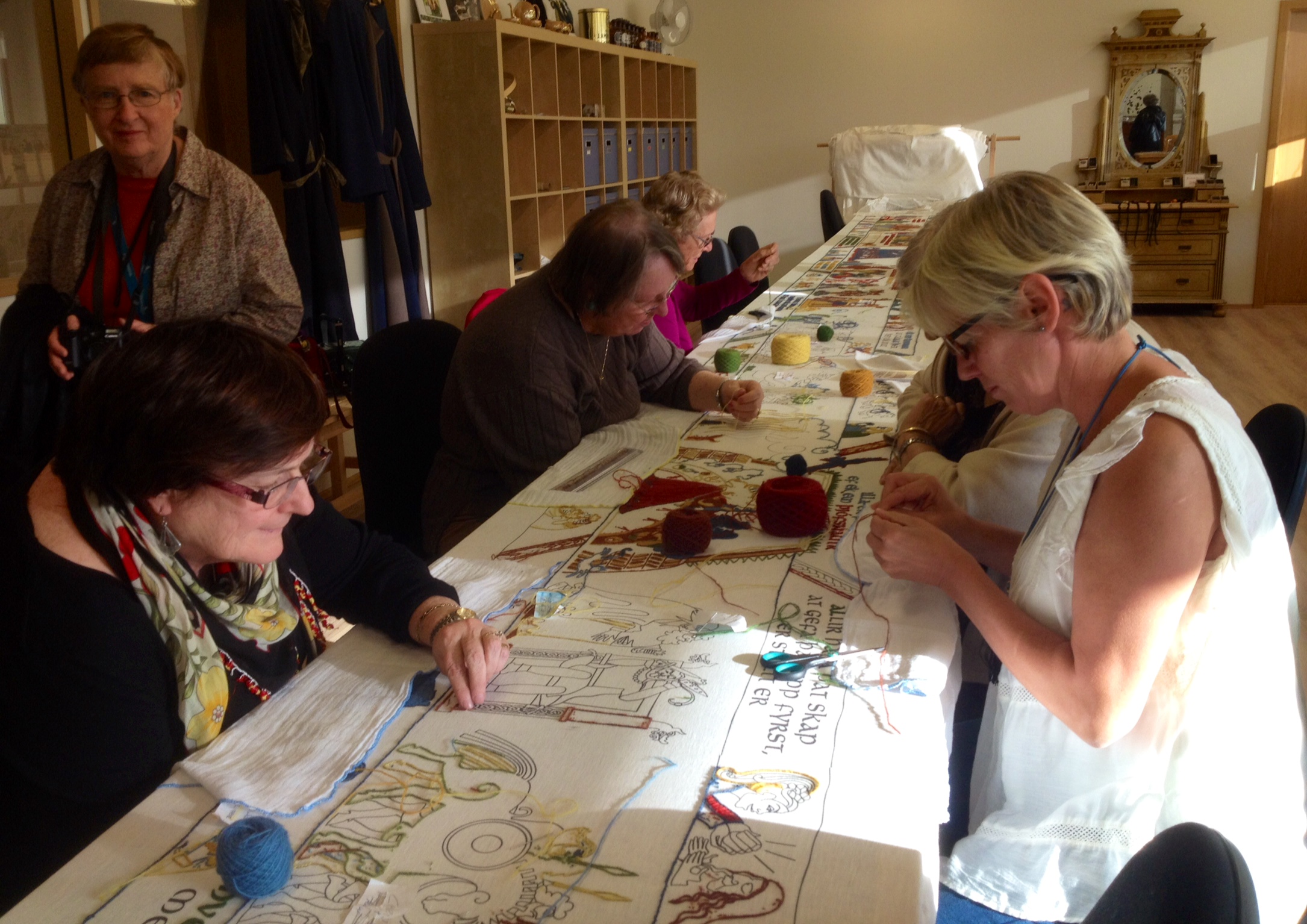 We are staying on a working farm, where we continue to enjoy amazing views, surprisingly excellent food, and wonderful hospitality. At the Saga Centre in Hvolsvöllur, some of us pitched in to work on long tapestry depicting tales from Njal’s saga. Later we attended a talk by a prominent playwright on Icelandic feminism and the role of women in the arts. I remain so impressed by the literary accomplishments of this tiny population and by Icelanders’ love of books and reading. As this BBC Travel article “Iceland As Literary Muse” notes, Reykjavik is one of only six UNESCO Cities of Literature.